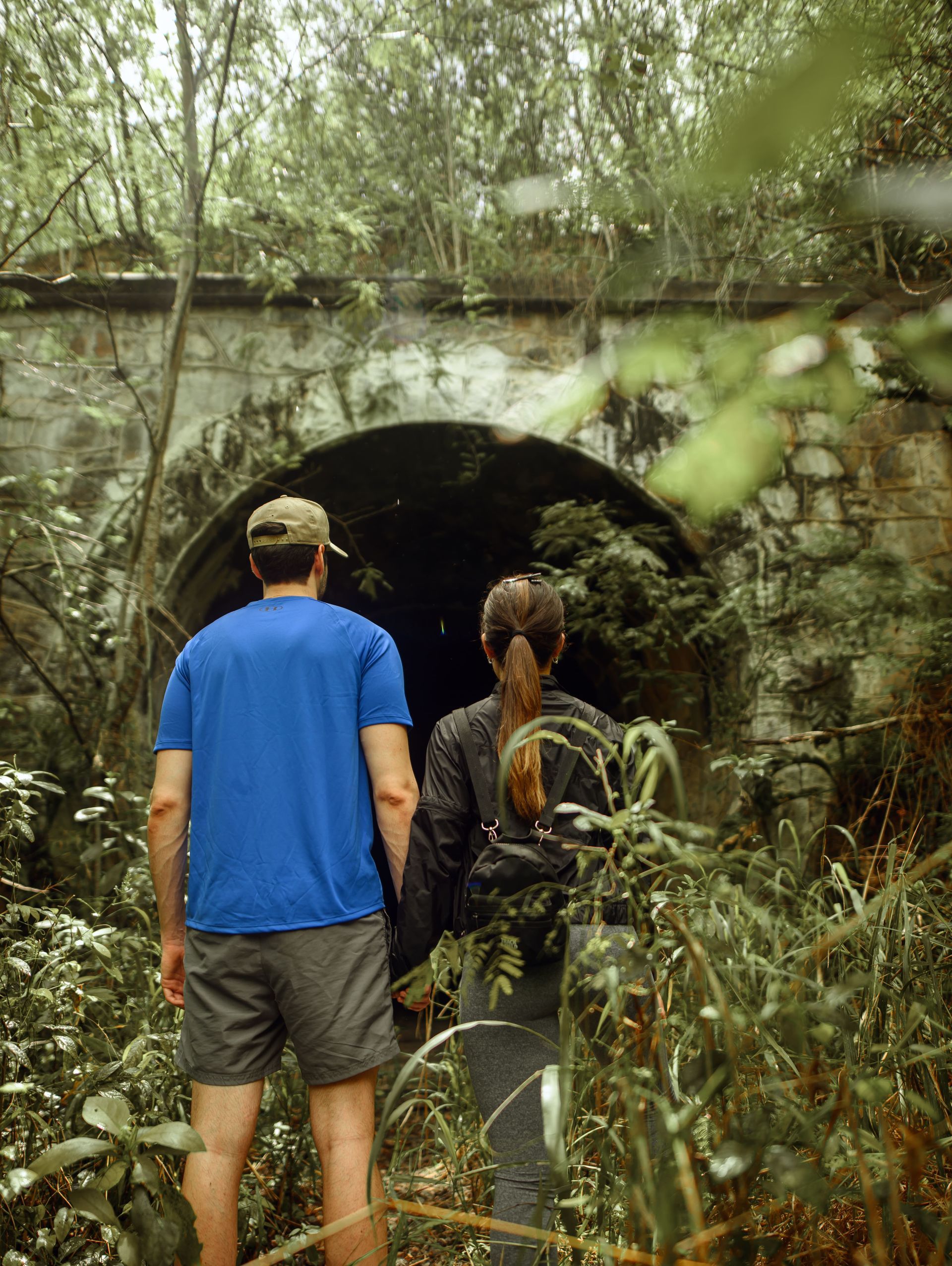 The adventure can begin with a trail along the Estrada de Ferro Central de Pernambuco, approximately two kilometers long. The trail passes through two tunnels and bridges, ending at the area that serves as the base for rappelling.